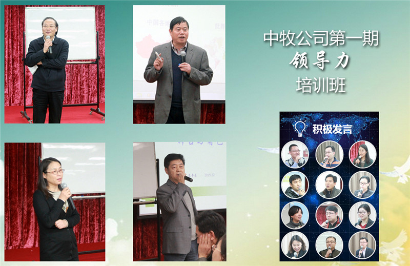 为使公司总部、二级企业新晋中层管理人员快速转变角色、适应新岗位、提高领导能力,根据公司《人才发展纲要暨 2015年培训计划》,公司于2015年12月15日-16日举办了为期一天半的“中牧总公司第一期领导力培训班”。本次培训根据公司战略目标、改革发展实际和学员培训需求,以“善于学习、勇于变革、敢于担当、提升领导力应对严峻挑战”为主题,邀请公司四位领导班子成员、外部经营管理专家作为培训讲师,为33名近两年总部新晋中层管理人员及各主要二级企业管理骨干做了一期高质量的培训,培训还吸引了30多名总部中层管理干部、青年骨干员工踊跃参加。