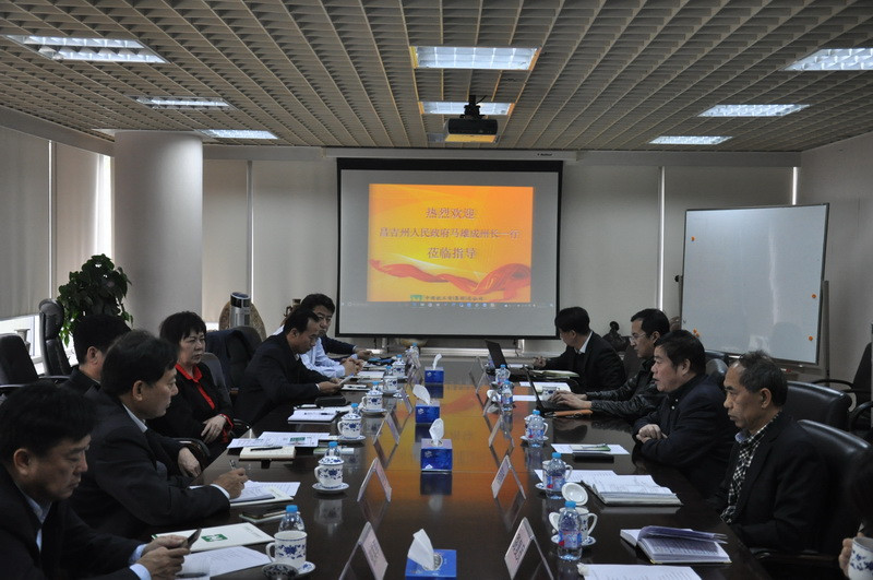 2016年11月11日,新疆昌吉回族自治州州长马雄成带领的政府代表团一行10人来访中牧集团,成员包括副州长王燕、秘书长马生刚、畜牧兽医局局长温希斌、安监局局长张其军、奇台县县委书记李新国等。 中牧集团总经理薛廷伍在北京热情接待了马雄成州长一行,双方就深化农业合作项目进行了深入友好的会谈,公司副总畜牧师程国辉,财务金融部总经理杜伟国、企业发展部总经理曹广宁、畜牧发展事业部资深业务经理徐庆部等有关同志参加了会谈。