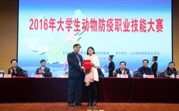 2016年12月9日—10日,由中国现代畜牧业职教集团、山东省畜牧职业教育集团主办、山东畜牧兽医职业学院承办的2016年大学生动物防疫职业技能大赛在山东潍坊圆满落幕。本次比赛采取理论知识考试和现场操作技能考核相结合的形式进行,技能考核包括成年鸡翅静脉采血、心脏采血、鸡体解剖与采样等项目,来自全国各地21所院校的36支代表队共计108人参加了比赛。比赛中,参赛选手专心致志、认真仔细,全力以赴做好比赛的各个环节,赛出了水平,赛出了风格。经过两天的角逐,大赛最终决出特等奖1个、一等奖4个、二等奖7个、三等奖11个和优秀奖13个。