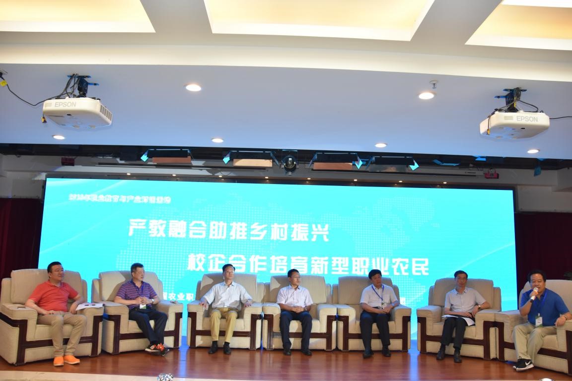 会议期间,围绕“助推乡村振兴,校企合作培育新型职业农民”主题举办了校企高峰论坛,论坛由许世杰主任主持,广东科贸职业学院李志伟院长、上海农林职业技术学院魏华院长、甘肃畜牧工程职业技术学院杨孝列院长、徐州生物工程职业技术学院蒋留生院长、上海光明生猪集团邹广斌总裁、宁夏中牧亿林畜产股份有限公司张明烽副总经理进行了校企对话,达成了一致共识:校企双方抓住乡村振兴战略发展红利开展深入合作,促进农牧类人才培养供给侧和产业需求侧结构要素全方位融合,培育新型职业农民服务现代农牧业发展。本次论坛活动入选教育部2018年职业教育与产业对话活动计划。
