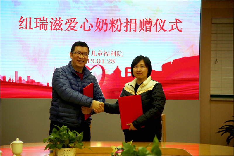 2019年1月28日,正是农历小年,纽瑞滋(上海)食品有限公司的16名党员、团员和职工代表,一早便来到上海市儿童福利院,为孩子们带来新春的祝福。6年前,纽瑞滋公司庄严承诺,每年定期向福利院捐赠婴幼儿配方奶粉和营养品;6年后,纽瑞滋公司工会主席陈煜代表公司再次与福利院签署捐赠项目协议书,续约三年,继续为上海市儿童福利院提供奶粉捐赠等服务。