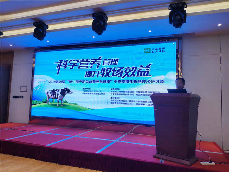 2019年6月13-14日,第四届“奶牛围产期免疫营养与健康”规模牧场技术研讨会在宁夏吴忠市成功召开。本次会议由宁夏吴忠市农业农村局、吴忠市奶牛养殖协会主办,中牧集团和中牧股份联合承办,吴忠市农业农村局副局长杨军、吴忠市奶牛养殖协会会长王文斌、中牧集团副总经理杨青春、种畜禽事业部总经理赵风龙、动保事业部资深市场经理安福生等出席本次大会。来自宁夏地区贺兰山奶业、恒源林牧业、中地牧业、天天牧业、优牧源等牧场200余人共同参加了技术研讨。